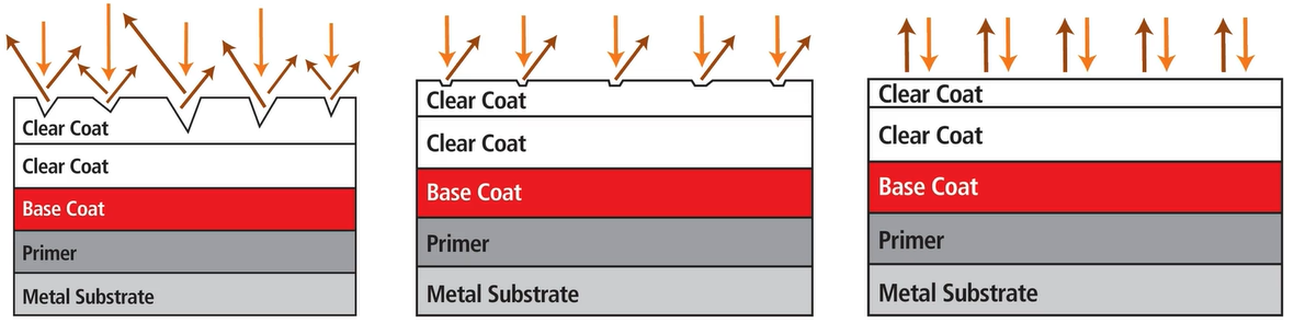 - 3D polymeric framework (Cures/Dry up not flat and adds 2 to 3 microns to the paint system).